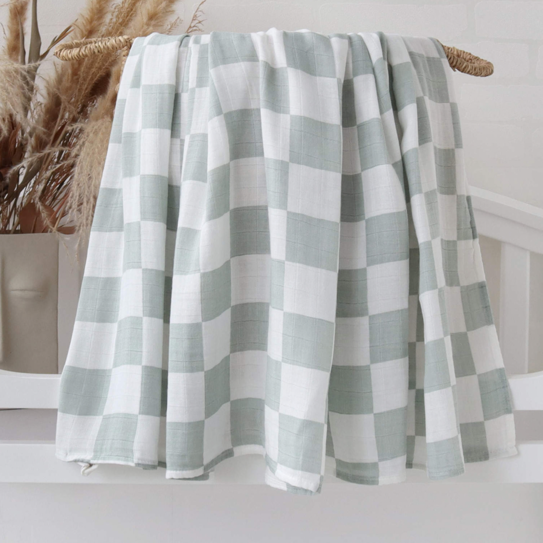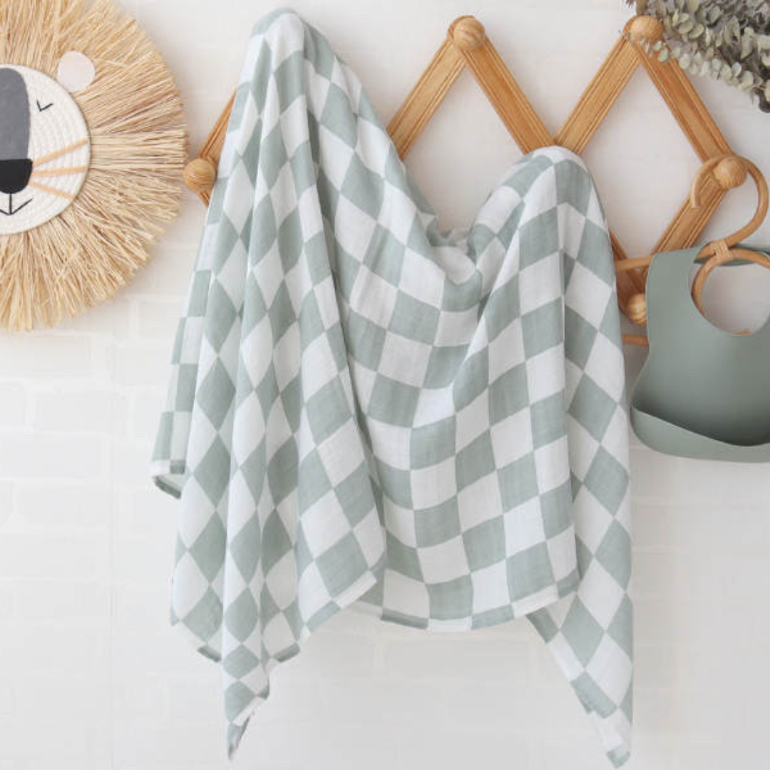 Soft to touch and gentle against your bubs skin, our Muslin cotton baby blanket is ideal for swaddling, nursing cover, pram cover, burp cloth or change matt.